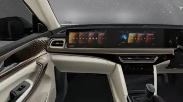 From the AX variant, you get the new two-spoke steering wheel, which adds a contemporary look and houses integrated controls for audio, cruise control and driver assistance features. The overall dashboard layout remains clean, but the AX7 benefits from improved material quality, including soft-touch surfaces and leatherette upholstery, which elevate the cabin ambience. Even the steering wheel and gear lever is finished in leather from this variant onwards. Carried over from the lower variants, you get plenty of storage spaces, a panoramic sunroof to make the cabin feel airy, and front and rear armrests.