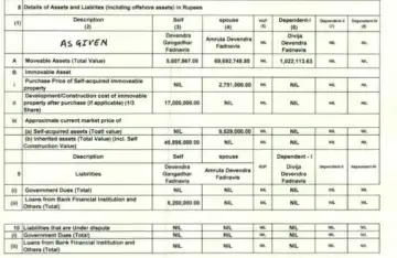As mentioned in his election affidavit, Fadnavis has a net worth of ₹5.2 crore. This includes ₹56 lakh as movable and ₹4.6 crore as immovable assets comprising agricultural land and residential properties.