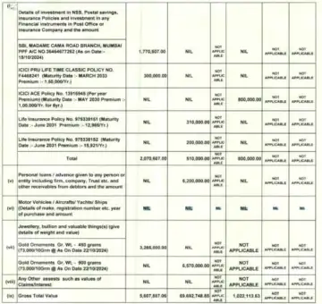 She has ₹10,000 cash in hand and ₹5.6 crores worth investment in shares and mutual funds, according to the affidavit.