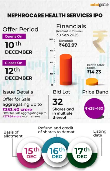 The ₹871.05 crore IPO comprises a fresh issue of 0.77 crore shares amounting to ₹353.40 crore, along with an offer for sale of 1.13 crore shares aggregating to ₹517.64 crore. From the fresh issue proceeds, Nephrocare intends to allocate ₹129.1 crore for setting up new dialysis clinics across India and ₹136 crore for repayment of existing borrowings, with the remaining funds earmarked for general corporate purposes.