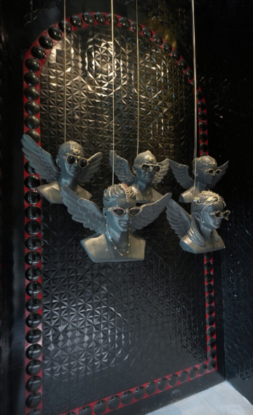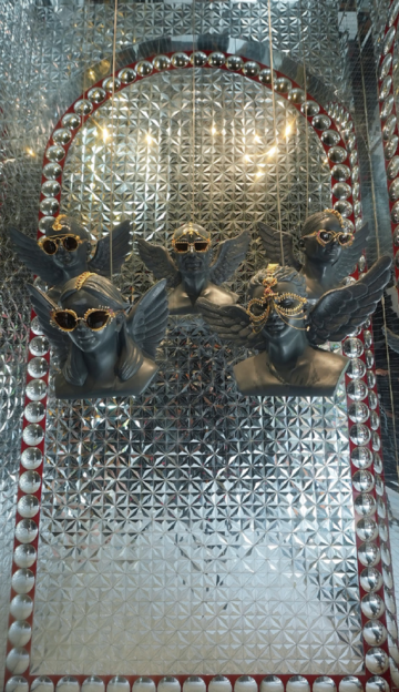 What makes this space significant is not scale, but authorship. The entire store has been conceived and built in-house — not as a retail format, but as an installation of ideas. Mirror fragments placed one shard at a time reimagine the Sheesh Mahal tradition, turning light into a moving participant within the space. Jaipur arches speak of origin, floating cupids and miniature fountains recall Bandra’s Catholic heritage, and a sculpted wall of ears quietly acknowledges the peculiar poetry of Mumbai’s public art.