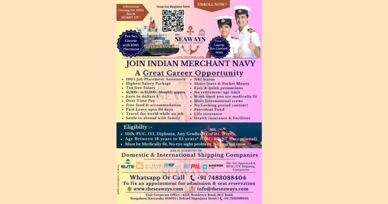 The Merchant Navy is an exciting and lucrative career option that offers the chance to work on the world’s shipping lines, traveling across oceans and experiencing diverse cultures. Whether you’ve just completed your 10th-grade education or graduated from college, a career in the Merchant Navy is open to you with proper training and certification. Through The Seaways Placement & Services you can enroll in government-approved pre-sea courses that offer 100% placement assistance and open the doors to a life full of opportunities and adventure.