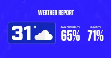 The clash between KKR and RR is in danger to get washed out due to rain as almost 65% rain is expected during the morning time, However during the match hours in the afternoon, the sky is expected to get clear.