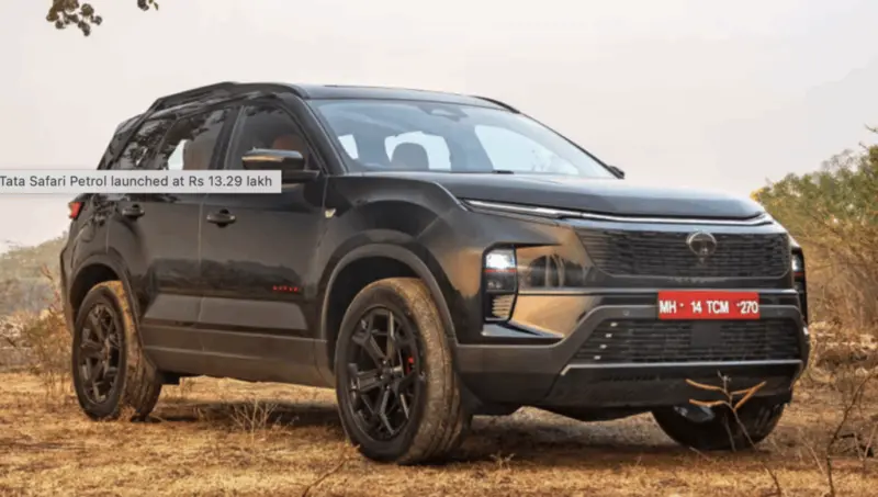 Tata Motors has launched the petrol version of the Safari SUV in India, priced at ₹13.29 lakh (ex-showroom). This marks a significant expansion of the Safari lineup, which was previously available only with diesel engines.