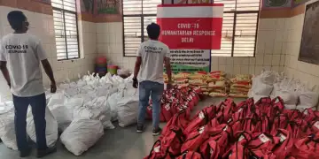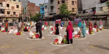 Distribution of ration and PPE kits during the COVID-19 lockdown while maintaining social distancing