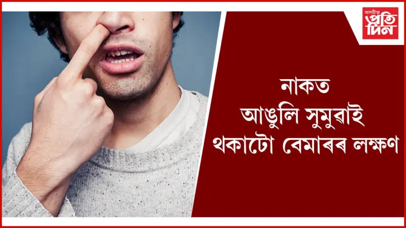 ডিজিটেল ডেস্ক: নাকত আঙুলি সুমুয়াই থকাটো বহু লোকৰে অভ্যাস।সাধাৰণতে এই অভ্যাসক আমিবোৰে বেয়া বা ভুল অভ্যাস বুলিয়েই বিবেচনা কৰি থওঁ। কিন্তু, প্ৰকৃততে নাকত আঙুলি সুমুৱাই থকাটোয়ে আপোনাক ৰুগীয়া কৰিব পাৰে। আচৰিত যেন লাগিলেও এয়া একেবাৰেই সত্য। চিকিৎসা বিজ্ঞানৰ ভাষাত নাকত আঙুলি সুমুৱাই থকাটোক ৰাইনোটিলোক্সোমিয়া বুলি কোৱা হয়। এতিয়া আপুনি শেহতীয়া গৱেষণাৰ বিষয়ে জানি অলপ আচৰিত হ'ব। হয়, এই গৱেষণাত দেখা গৈছে যে নাকত আঙুলি সুমুৱাই থকা অভ্যাসে আপোনাক আলঝেইমাৰ ৰোগত ভোগাব পাৰে। ইয়াৰ বাহিৰেও, আপুনি হেৰুৱাব পাৰে গোন্ধ পোৱা ক্ষমতা।
