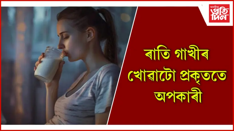 ডিজিটেল ডেস্ক: গাখীৰৰ স্বাস্থ্য উপকাৰিতাৰ বিষয়ে হয়তো দোহৰাৰ প্ৰয়োজন নাই। সুস্বাস্থ্যৰ প্ৰতি লক্ষ্য কৰি প্ৰাস সকলো বয়সৰ লোকেই গাখীৰ খায়। বহু লোকৰে ৰাতি শোৱাৰ পূৰ্বে গাখীৰ খোৱাৰ অভ্যাস আছে। কিন্তু প্ৰকৃততে ৰাতি গাখীৰ খোৱাটো কিমান স্বাস্থ্যসন্মত আপুনি জানেনে ? আয়ুৰ্বেদৰ মতে, আহাৰ খোৱাৰ ঠিক পিছতে গাখীৰ খোৱাটো স্বাস্থ্যৰ পক্ষে উপকাৰী নহয়। ই হজমৰ সমস্যা সৃষ্টি কৰাৰ লগতে বহু ৰোগৰ কাৰক হ'ব পাৰে। হয়, ৰাতি সঠিক সময়ত গাখীৰ নাখালে ই স্বাস্থ্যৰ পক্ষে অপকাৰী হ'ব পাৰে।