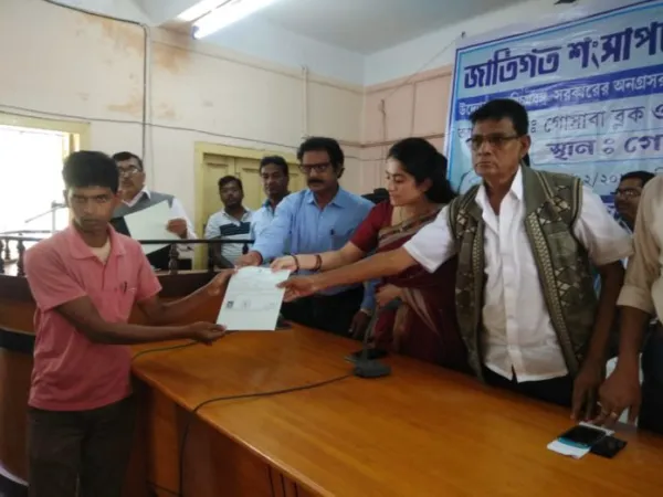 সুভাষ চন্দ্র দাশ,গোসাবা —শনিবার সকাল থেকে বিকাল পর্যন্ত দক্ষিণ ২৪ পরগনা জেলার গোসাবা ব্লকের সভাকক্ষে কাস্ট সার্টিফিকেটের এক ক্যাম্পের আয়োজন করা হয়।এদিনের ক্যাম্পে ৩৩৯ জন ছাত্র ছাত্রীর হাতে এসসি,এসটি,ওবিসি কাস্ট সার্টিফিকেট তুলে দেন ক্যানিং মহকুমা শাসক বন্দনা পোখারিয়া।অন্যান্য বিশিষ্টদের মধ্যে উপস্থিত ছিলন গোসাবার বিডিও সৌরভ মিত্র, গোসাবা পঞ্চায়েত সমিতির সভাপতি অচিন পাইক সহ অন্যান্যরা।এদিনের অনুষ্ঠানে ক্যানিং মহকুমা শাসক বন্দনা পোখারিয়া বলেন '৩৩৯ জন ছাত্র ছাত্রী কে এসসি,এসটি,ওবিসি কাস্ট সার্টিফিকেট তুলে দেওয়া হয়েছে এই ক্যাম্পের মাধ্যমে।ফলে এখানকার ছাত্র ছাত্রীরা সরকারি সুযোগ সুবিধায় খুবই উপকৃত হবে।আগামী দিনে আরও বেশি করে এই ক্যাম্পের মাধ্যমে ছাত্র ছাত্রীদের হাতে তুলে দেওয়া হবে কাস্ট সার্টিফিকেট।'এদিকে সুন্দরবনের প্রত্যন্ত এলাকার ছাত্র ছাত্রীরা কাস্ট সার্টিফিকেট পেয়ে খুবই খুশি হয়।ফলে ছাত্র ছাত্রীদের উত্সাহ ছিল চোখে পড়ার মতো।