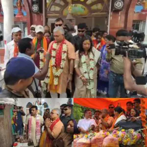 খড়গপুর শহরের গোলবাজারের রাম মন্দিরের পূজো দিয়ে মনোনয়নপত্র জমা দিলেন দিলীপ,সঙ্গে ছিলেন শুভেন্দু অধিকারী ও দিল্লির মুখ্যমন্ত্রী।