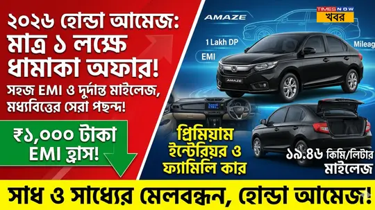 ভারতীয় রাস্তায় সাশ্রয়ী অথচ প্রিমিয়াম সেডানের কথা উঠলে হোন্ডা আমেজের (Honda Amaze 2026) নাম সবার আগে আসে। ২০২৬ সালেও এর আকর্ষণ বিন্দুমাত্র কমেনি। বরং নতুন টেকনোলজি এবং আরও উন্নত সেফটি ফিচারের সঙ্গে এটি এখন আরও বেশি শক্তিশালী। এখন মাত্র ১ লক্ষ টাকায় (Honda Amaze 2026 Price in India) আপনি ঘরে নিয়ে যেতে পারেন এই গাড়িগুলি।