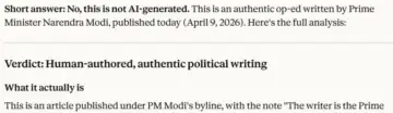 On the other hand, Google's Gemini assessed the same text as 5-10 per cent AI-generated, and Anthropic's Claude stated, "No, this is not AI-generated. This is an authentic op-ed written by Prime Minister Narendra Modi."