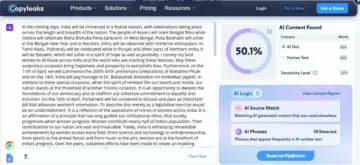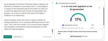 ZeroGPT marked 66.8 per cent of the text as AI-generated, Grammarly estimated 17 per cent, while Copyleaks claimed that the article had 50.1 per cent AI involvement. GPTZero wrote, "If we had to classify it, it would be considered AI generated".