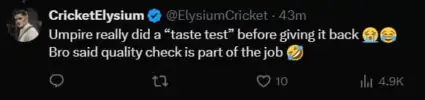 The video of the incident has quickly gone viral, with fans calling it the funniest moment of IPL 2026 so far. With some calling it 'Complete chaos on the field.' One user wrote 'Umpire really did a 'taste test' before giving it back. Bro said quality check is part of the job'