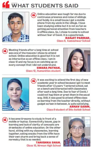 "My younger sister and I had one phone for online education. My brother is in class 12 and so he has his own phone. When my sister and my classes clashed, one of us missed attending online class and mostly it was me. Now, as schools have reopened, it is nice to be back to a lively classroom, interact with students, teachers and learn face-to-face," she said.