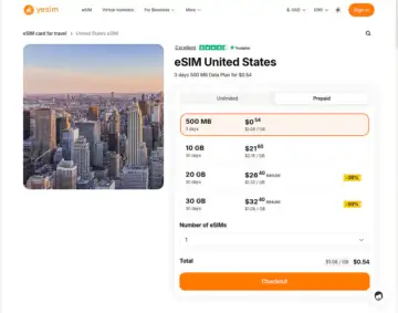 Yesim is an eSIM provider offering data plans for travelers, including U.S. coverage. Known for its reliable connectivity and easy-to-use app, Yesim caters to various travel needs.
