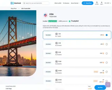 Global Coverage: Nomad provides eSIM plans for over 200 destinations, including the U.S.