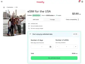 Holafly's unlimited U.S. plans are priced on a daily average of around $2 to $4 per day, depending on the duration of the package.