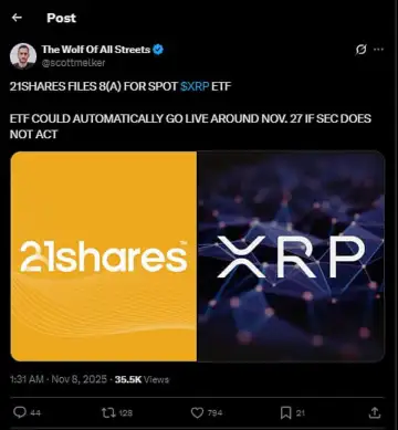 21Shares' filing for a spot XRP ETF marks a major step toward expanding crypto access through regulated markets. If the SEC allows the 20-day window to expire without action, the ETF could debut by November 27, potentially boosting XRP's visibility and institutional demand.