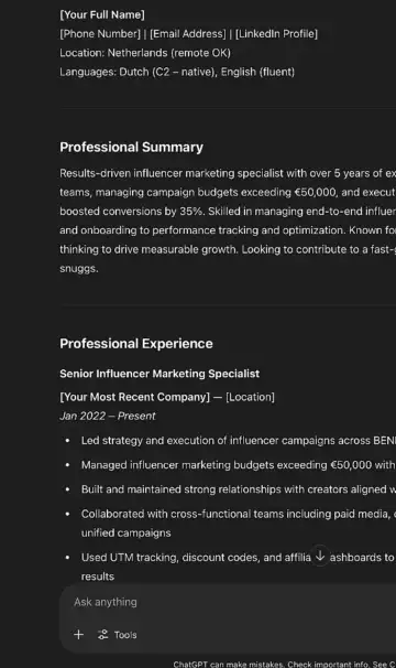 Cover Letter Prompt: "Write a personalized LinkedIn message or cover letter for this job descriptionpaste here]."