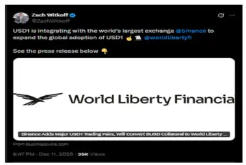 World Liberty Financial CEO Zach Witkoff welcomed the expansion. He said the integration marks a milestone for a stablecoin that launched only months ago. He added that Binance's scale gives USD1 access to hundreds of millions of users worldwide.