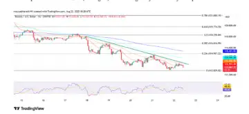The Powell Jackson Hole speech is expected to influence cryptocurrency sentiment. A break below that would expose Bitcoin to the $108,000 region, where stronger buyers are likely to step in.