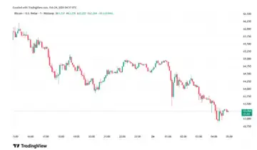 Bitcoin is currently trading between $64,000 and $65,000. Over the past 24 hours, its price has ranged from about $63,400 to $66,500. In Indian rupees, one BTC is worth Rs. 59 lakh.