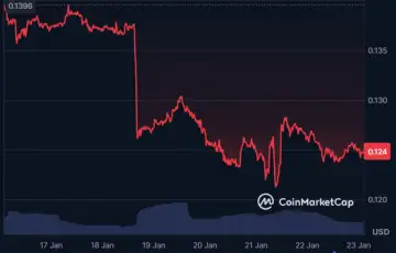 DOGE declined from $0.1271 to $0.1250 over the 24 hours ending January 23. The move broke below the $0.1254 support and pushed the price to a session low of $0.1233. Trading volume jumped to 556 million DOGE during the US session, approximately 124% above the 24-hour average. This level of spike points to active repositioning.