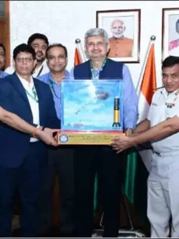 During a formal event, the Defence Research and Development Organisation (DRDO) presented the Medium Range-Microwave Obscurant Chaff Rocket (MR-MOCR) to the Navy.