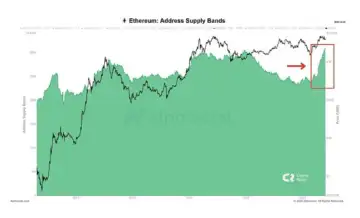 The new graph from Alphractal indicates a significant upturn in Ethereum accumulation by giant whales, along with a rise in the address supply bands. Since the beginning of October 2025, wallets holding between 10,000 and 100,000 ETH have been increasing rapidly, which is interpreted as consistent buying pressure from whales amid market indecision.