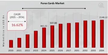 Image Source: Market Research Future As you can see in the image above, the forex card market has been growing steadily over the years. In 2024, it stood at USD 461.22 billion and is expected to cross USD 537.88 billion in 2025. By 2034, it's projected to reach over USD 2,146 billion, growing at a solid pace of 16.62% CAGR.