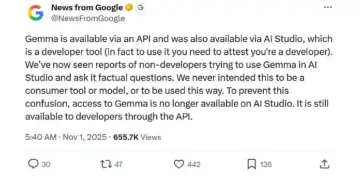 In a post on X, Google claimed that its Gemma models were designed as open tools for use by developers and researchers only, not for consumers or factual interactions. "We've now seen reports of non-developers trying to use Gemma in AI Studio and ask it factual questions," the company said, explaining why it pulled it offline from the platform.