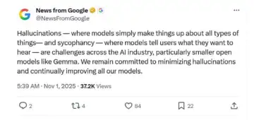 Addressing thehallucination controversy, Google has stated that AI models producing unrealistic or imaginary information continue to be a problem throughout the industry, especially with smaller open models like Gemma. The company also pointed out 'sycophancy,' where models repeat back to users things they want to hear, as another concern.