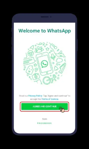 Launch & Verify: Launch WhatsApp, tap Agree & Continue, and add your phone number to verify it