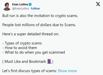 Source: x | Early stage crypto investor's take on crypto scams As one of the top crypto KOLs and early stage crypto investors, I've watched multiple market cycles swing from fear to greed and back again. Bull markets expand opportunity, but they also expand deception.