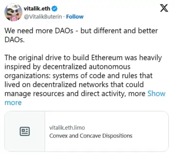 Source: coinspeaker | Vitalik Buterin's take on crypto and DAOs His broader point - better code isn't enough without better systems and accountability.