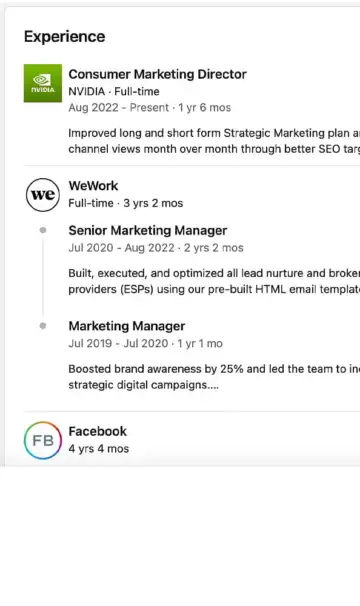 Showcase Work Experience: List detailed roles, key accomplishments, and measurable results to prove your impact.