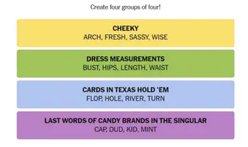 He should start by pursuing the groupings he is most certain of, which are usually the yellow ones. Never be afraid to view the words once more by using the shuffle button.