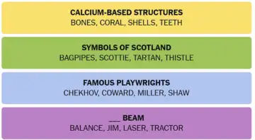 Today's NYT Connections blends Scottish icons, famous playwrights, calcium-based structures and clever "___ Beam" wordplay.
