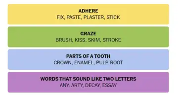 If you are still a bit confused about the themes of today's puzzle, below are the one-word hints. From every category, one word is listed below: