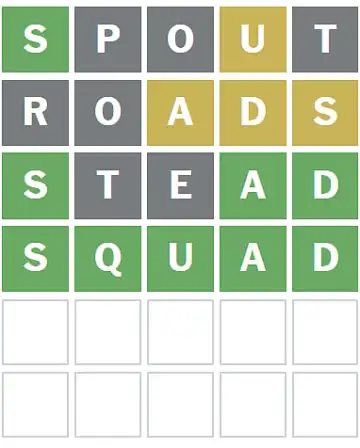 We now have S _ _ A D. Looking at our yellow 'U' from the first guess, it only has two possible spots left. When you combine the remaining letters with the rare but necessary 'Q', the only word that fits the formation is SQUAD.