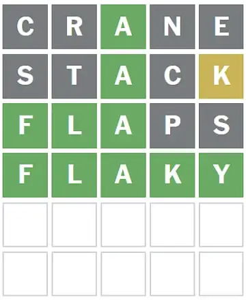First Guess (CRANE): Starting with the WordleBot favorite. This yields a yellow A and a yellow K. A fantastic start, confirming two vital letters are in the word but currently in the wrong spots.