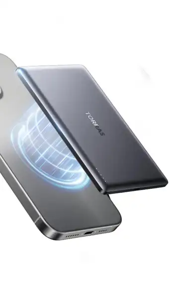 TORRAS MiniMag Power Bank supports MagSafe charging with FCC, UL, TUV, DOE, and CE certifications.