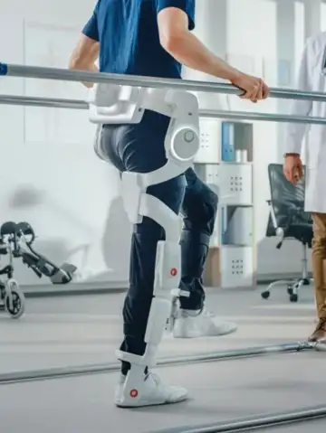 Robotic exoskeletons help with rehabilitation, aiding patient recovery and mobility.