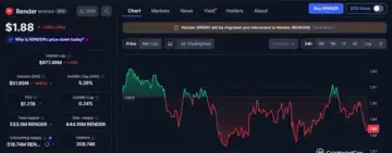 Render ($RNDR) is becoming more popular due to increased demand for GPU power, especially among industries using AI, gaming, and digital media. The token is trading at $1.88 with a fall of 1.29%. The market cap is at $977.48 million, and a 24-hour trading volume of $51.85 million, with a fall of 19%. With the increase in these industries, RNDR can definitely benefit from this trend; it is a good investment choice.