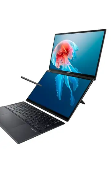 ASUS Zenbook DUO: Dual 14" 3K 144Hz OLED touchscreens enable multitasking, powered by Intel Core Ultra Series 3 for seamless workflow.