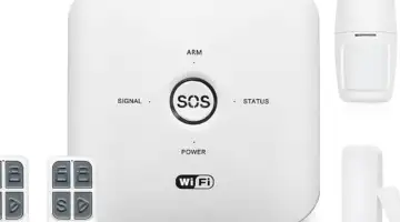 The New Avance Dual Band Smart Security Alarm System is a comprehensive setup featuring a large touchscreen, PIR motion sensor, and remote control. It operates on both GSM and Wi-Fi networks, so it can still notify when network connectivity is unavailable.