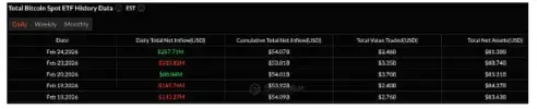SoSoValue data shows Tuesday's $257.7 million inflow reversed the prior trading day's withdrawals. The figure marked the strongest daily inflow since early February and followed a $203.8 million net outflow on Monday.