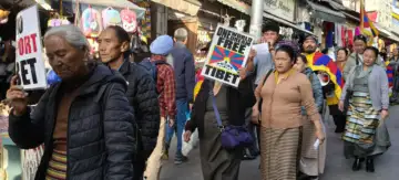 The protest saw participation from Tibetan Buddhist women students and members of the Tibetan community living in exile, who gathered in the city to commemorate the struggle for Tibetan freedom and call for the protection of human rights in Tibet.