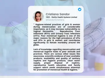 "Female consumers have become apprehensive and smarter and are highly aware of their personal hygiene requirements and suitable products available in the market as well as online. The pandemic has had a habit-changing effect on personal hygiene," says Cristiana Sandor, CEO, Stetho Health Systems Limited Company.