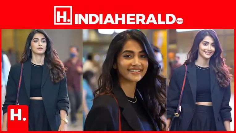 In the close-ups, Pooja's radiant smile and glowing skin steal the show. Her confident stride and natural expressions make the monochrome outfit look effortlessly glamorous. The soft airport lighting highlights her sharp features and flawless makeup — defined brows, subtle eyes, and a fresh, dewy complexion.